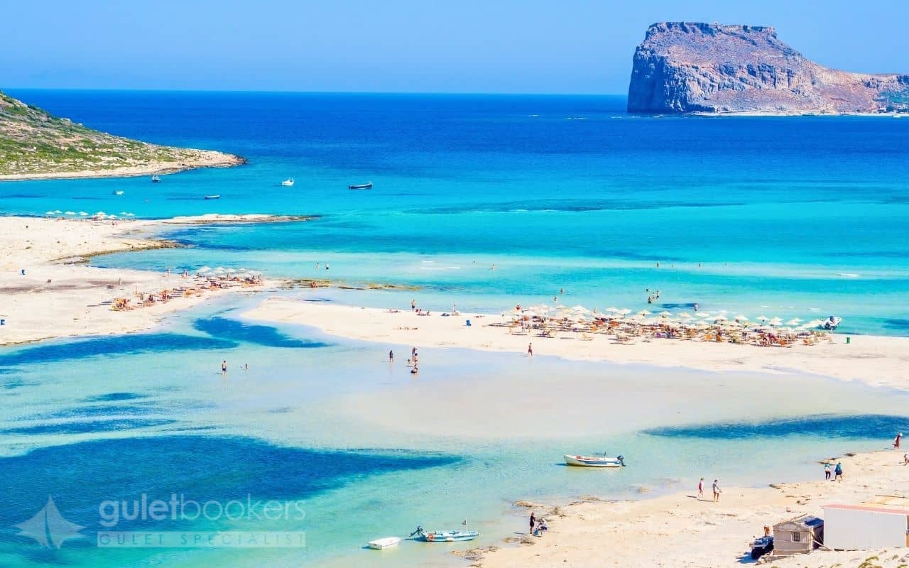Your traditional gulet yacht can cruise along the island’s varied coastline, from the palm-fringed beaches of Vai in the east to the dramatic gorges of the south. History buffs will marvel at the ancient Minoan palaces of Knossos and Phaistos, while nature lovers can explore the rugged interior with guided expeditions from coastal ports.