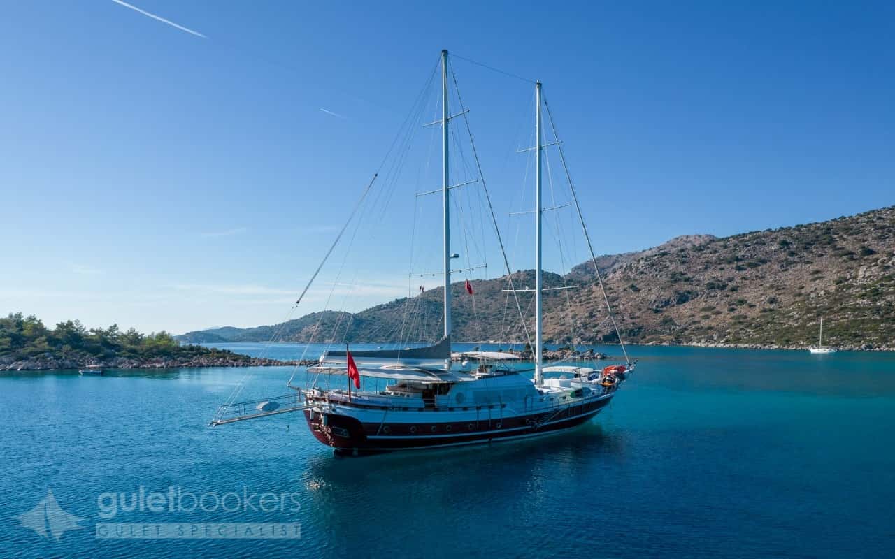 Each cabin of S Nur Taylan, which has a crew of 5 people, has air conditioning, a shower unit, a hair dryer, and amenities. It also offers its guests the privilege of a private jacuzzi on its deck. Jacuzzi and flybridge options, which are not available in many classical gulets, are just a few of the main reasons behind S Nur Taylan being among the best yachts to charter for a blue cruise.