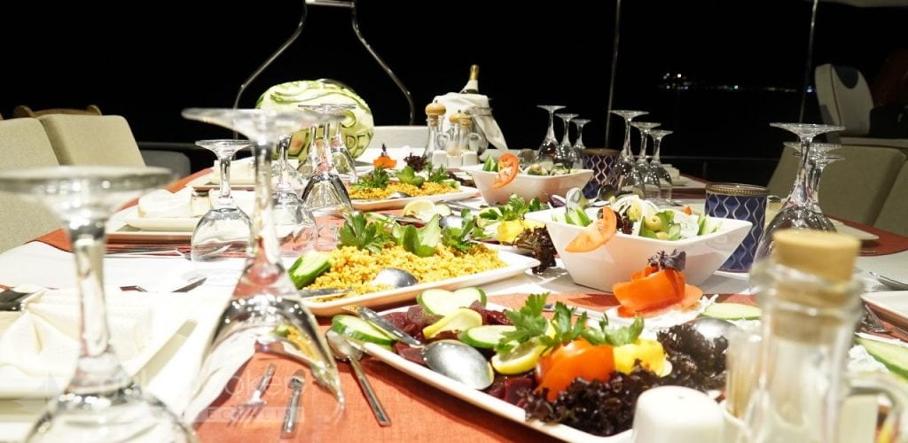 Dine on gulet yacht is one of the most stylish ways spent your evenings at sea. Every day you taste foods that are definitely cooked as personally for you. On the other hand, private gulet charter offers do the shopping list on your own. It means you create your list and inform your agency. All product which is fresh, sterilized and with packed, delivered to your gulet yacht before embarking. It’s very useful due to some food allergy situations as gluten-free, lactose-free products.