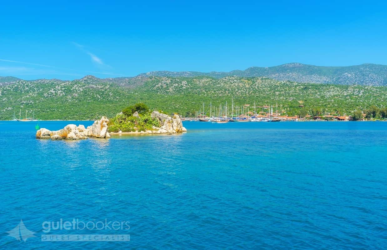 On the other hand Üçağız Bay located in the Kekova region. It is also a good shelter for yachts. Üçağız Bay, covered with pine trees on three sides, looks like a natural harbor. The ruins observed in Üçağız Village located in the north of the bay belong to the ancient city of Theimussa.
