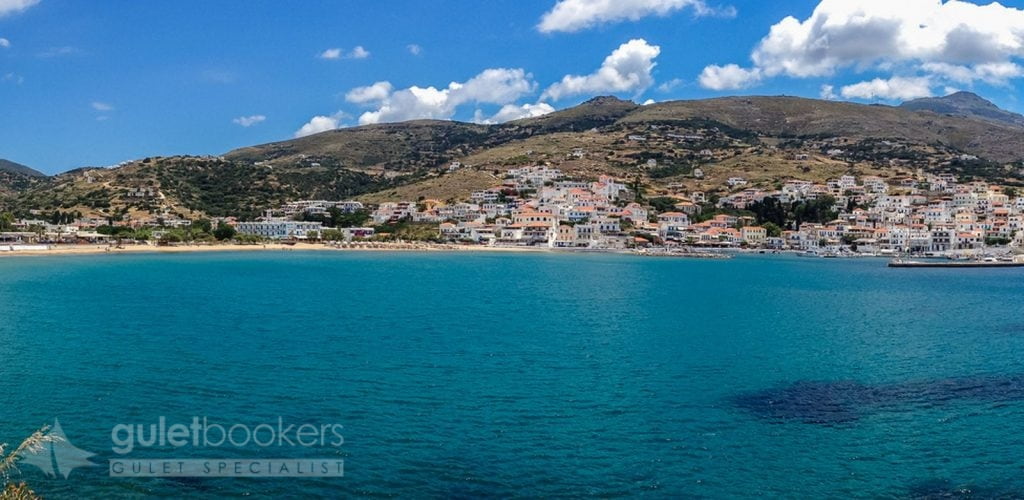 There are visitable Sandy beaches, rocky coasts with your private gulet. The mountain ranges alternating with fertile plains, lush vegetation, and many streams. Andros has always been seen as a gateway to the Aegean Sea. The island area is 400 sq. km, the coastline is 177 km and the population amounts to 10,000.